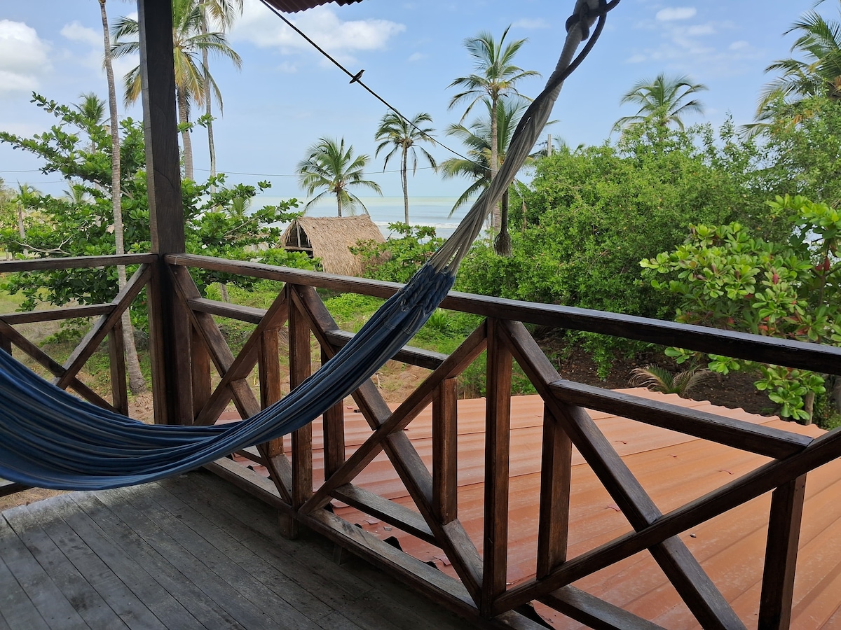 Cabaña frente al mar, naturaleza y playa infinita