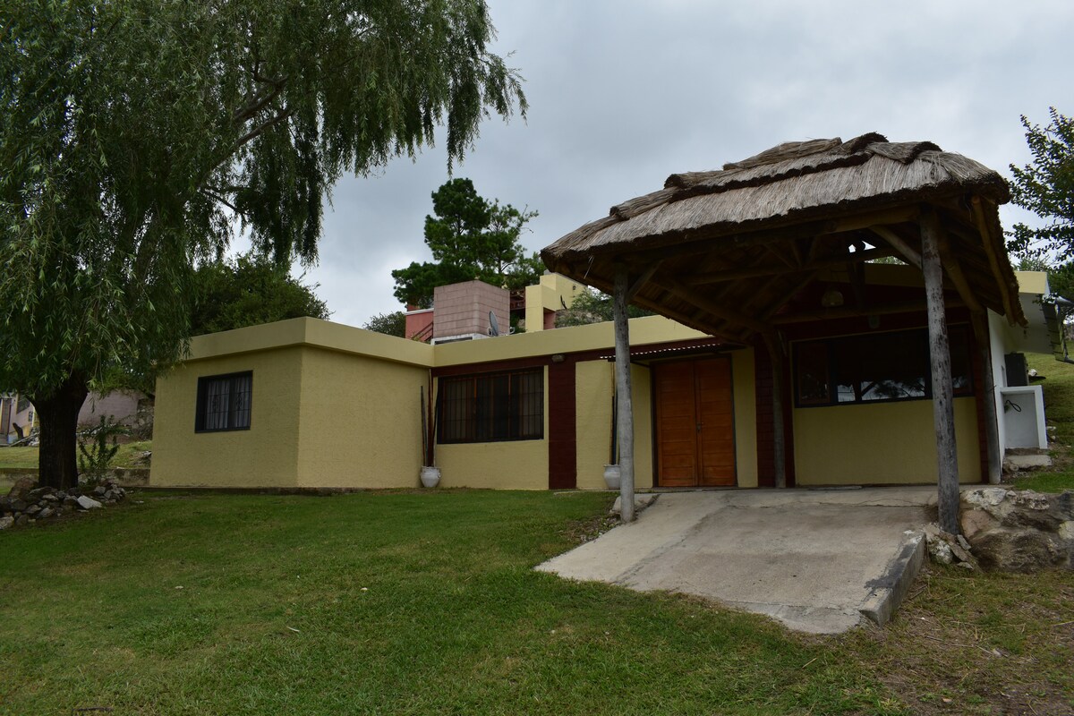 Vista franca a las altas cumbres y las sierras chicas, desde todas las ventanas y lugares de la casa. Es ideal para una familia grande o dos familias, espacios comunes amplísimos (living comedor y galería). La piscina es de uso exclusivo y esta cercada y el terreno es seguro. Gran Parrilla, Cochera techada para dos vehículos. Baulera para guardar tus cosas. Aires FC en todas las habitaciones, y dos en el living. Salamandra a Leña. Heladera con freezer, Wi fi, DTV.-