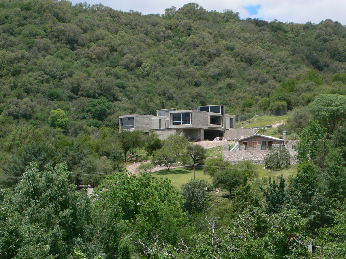 Casa en altura que se caracteriza por sus detalles de arte, diseño y confort, y a la vez por estar ubicada en el corazón de 5 has de monte nativo. Enclavada en lo alto de las sierras, y a pocos minutos de la población se distingue por su vista panorámica privilegiada, piscina, 3 galerías , asador, objetos de artistas cordobeses. Brinda al visitante una percepción espacial aérea que recuerda al vuelo de las aves, propiciando una experiencia de descanso y silenciosa contemplación.