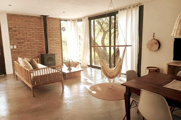 Relajate en este alojamiento único y tranquilo en las Sierras de Córdoba. Una casa soñada ubicada frente al rio Anisacate, a 80 m y 300 m de accesos a las playas mas lindas de la zona. La casa cuenta con espacios ampios y de concepto abierto, con hermosa vista a las sierras y un ventanal enmarcado por un antiguo algarrobo. Una hermosa casa para vacacionar en familia en un entorno de paz y naturaleza y disfrutar de todas las estaciones del año!!