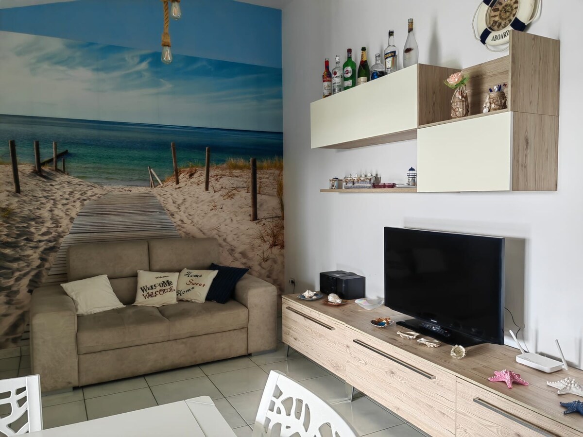 Splendido appartamento con terrazzino SUL MARE ristrutturato nel 2021 Aria condizionata e pompa di calore cucina ad induzione Soluzione adatta alle famigli la posizione sul mare e sugli stabilimenti balneari,lungomare tranquillo di giorno con ampie spiagge di sabbia ed un mare basso e pulito; la sera offre un panorama ricco di colori e folclore e un lungomare animato da bar, ristoranti e giochi, A 3 minuti a piedi si raggiunge il centro del paese e la fermata bus provenienti dal Nord Italia.