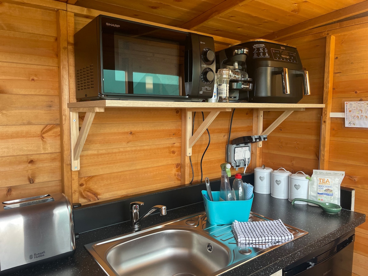 ¡Disfruta del encantador entorno de este romántico lugar en la naturaleza con el lujo de tu propio inodoro privado, ducha caliente y jacuzzi caliente a leña! Precalentamiento del jacuzzi disponible por 30 £ (la temperatura del agua de 32-38 ºC es agradable).
