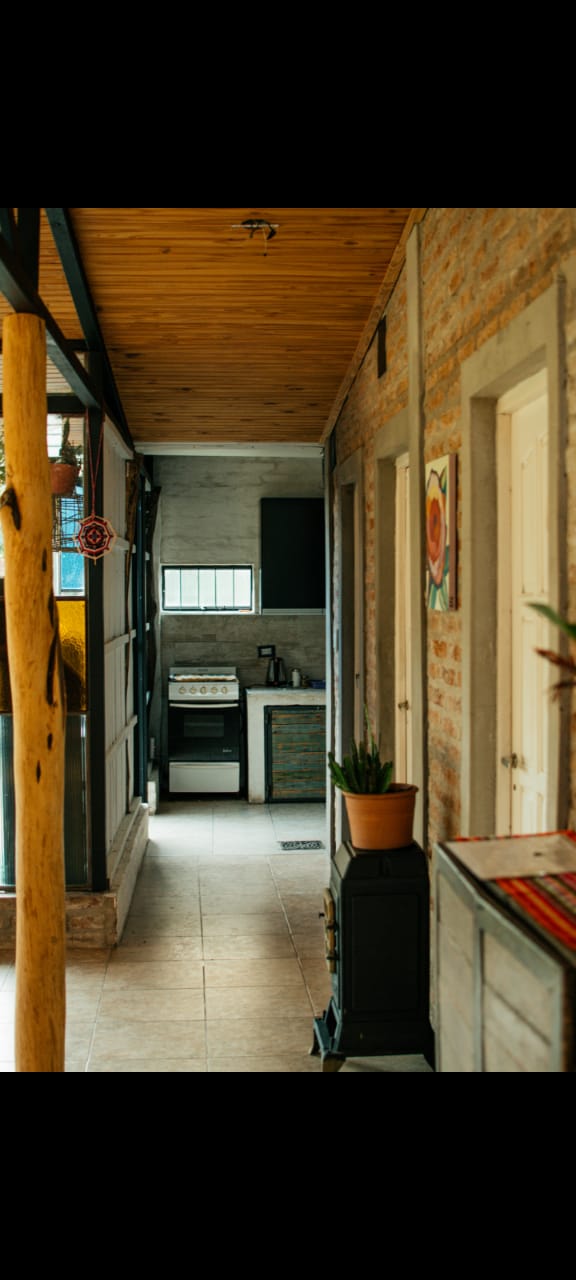 Relajate con toda la familia en este tranquilo y modesto alojamiento de zona rural. Alouatta, es una casa muy luminosa y espaciosa, con 2 dormitorios y un gran ambiente con living, cocina, comedor con chimenea integrados. Rodeada por dos galerias ideales para unos mates. Una parquizacion amplia con muchos arboles frutales exoticos y nativos, aves de todo tipo se acercan permanentemente. Tambien fauna nativa como monos caraya, de donde la casa toma su nombre (Alouatta = aullador)