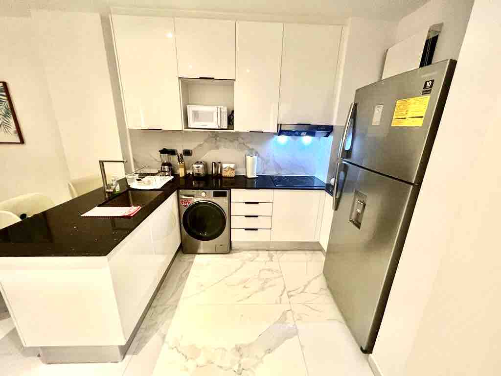 Fantastico apartamento con 2 amplias habitaciones con sus respectivos baños, más 1 baño de sala. Mobiliario necesario y cocina completa, cuenta con 2 balcones con vistas inmejorables tanto del area de piscina como en el otro extremo con vista a una naturaleza renovadora que puedes disfrutar desde el jaccuzzi de tu balcón (solo de agua fría). A solo 7 minutos de la playa en carro y a unos 20 minutos caminando. Traslado gratis! No pierdas tu oportunidad de disfrutar de este precioso apartamento!!