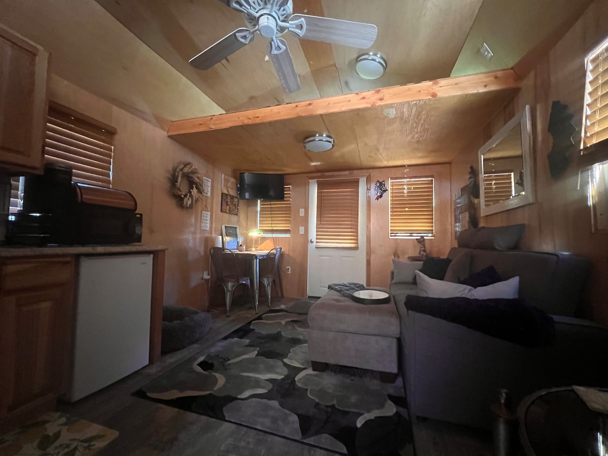 Esta es una granja en funcionamiento. Espera ver y escuchar a las ovejas, gallinas y perros durante toda tu estancia. Este vagón tiene una parte superior de lona, pero está aislado. Tiene una cama doble normal, pero no hay espacio para los huéspedes más altos. Se incluyen ropa de cama, toallas, electricidad, calentador de espacio, wifi y acceso al baño y a la cocina americana. Para un espacio más grande, reserva el Vagón 1, 2 o 3.