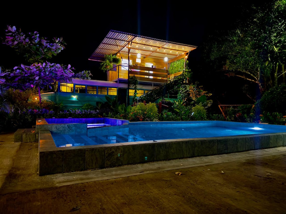Encuentra la paz en la naturaleza profunda en nuestros autobuses boutique reciclados hechos por costarricenses para el mundo. Ubicados entre dos principales reservas naturales, pero dentro de una comunidad cerrada, construimos este espacio para aquellos que quieren permanecer cerca de la ciudad (10 minutos en auto) y la playa (8 minutos en auto), pero siéntete inmerso en la selva...con todas las comodidades modernas. Te prometemos que será difícil salir. P.D.: Es muy recomendable tener tu propio transporte cuando te hospedes aquí. 4x4 es ideal.