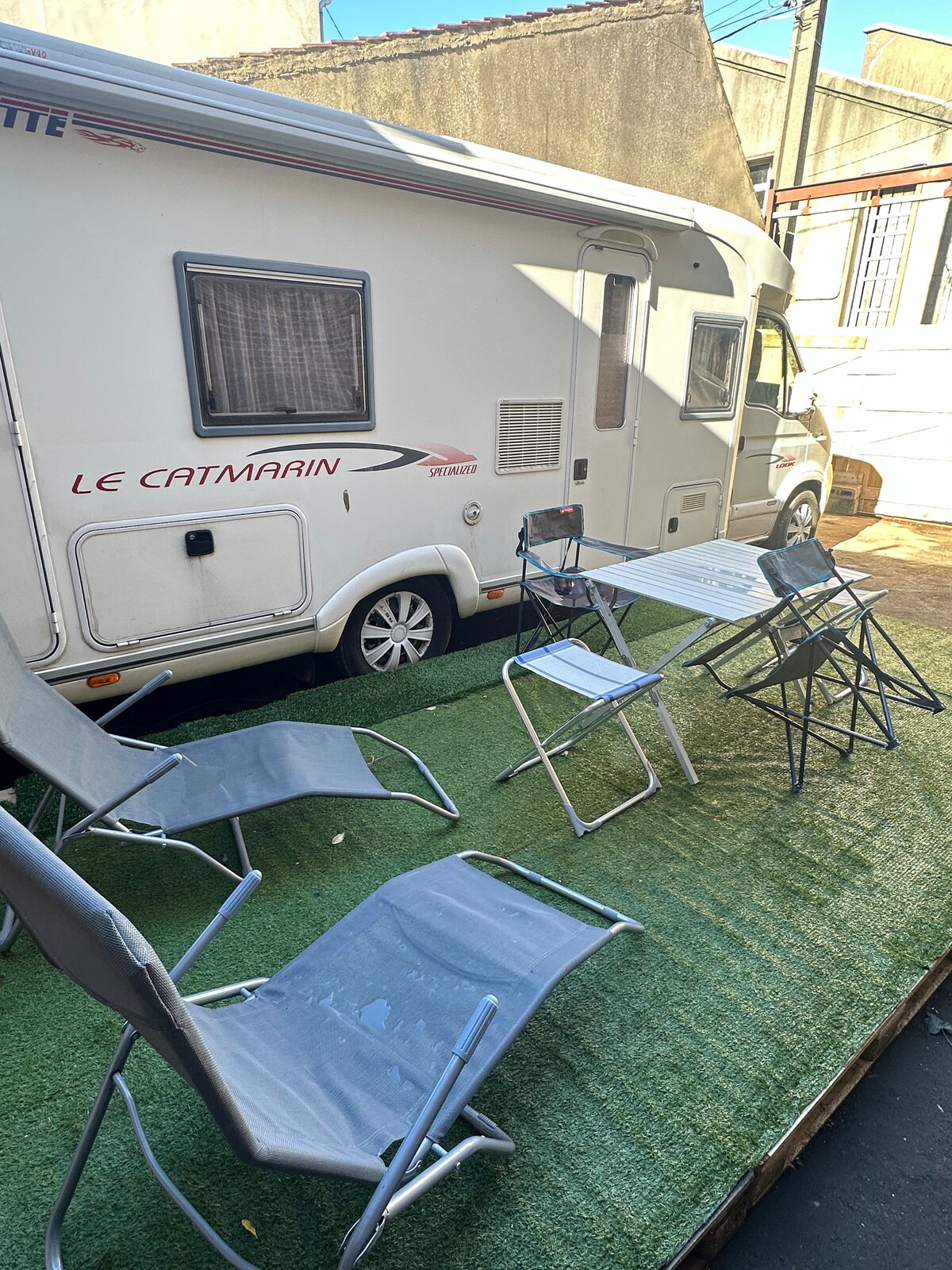 Ven a desconectar y darte un baño de naturaleza en el campo de 2. Una bocanada de oxígeno en un entorno verde para recargar energías ... una buena calefacción en invierno, aire acondicionado en verano. jardín privado frente a la puerta con puesta a disposición de un brasero; barbacoa; mesa, sillas , tumbonas en total privacidad con la comodidad atípica de una caravana lujosa y ecológica; inodoro seco al aire libre y alimentado con agua de lluvia filtrada. Productos orgánicos incluidos. Posible visita de gatos 😉