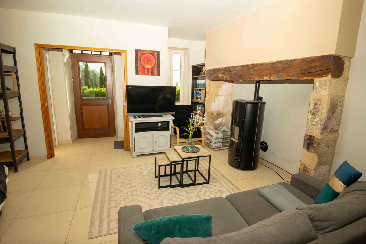 La casa de campo La Jolie se encuentra en preciosos jardines y tiene uso de una piscina climatizada, solo compartida con los propietarios. Una propiedad perigordiana bonita y bien equipada llena de carácter, perfecta para parejas o viajeros solos que quieran privacidad y tranquilidad. Te encantará la casa de campo por su ambiente y esos pequeños extras que significan tanto. Paseos circulares directamente desde la puerta. Ciudades vibrantes cercanas. Esta casa está diseñada para parejas, aventureros solitarios y viajeros de negocios. El wifi es de fibra. ¡Que lo disfrutes!