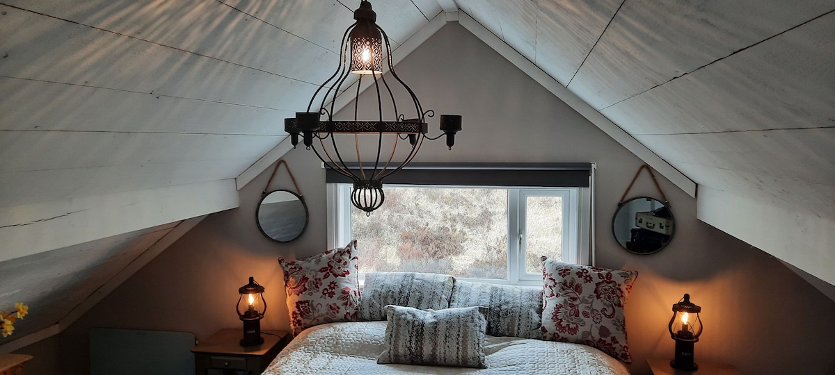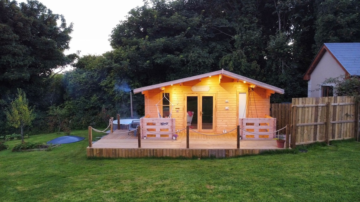 Relájate y desconecta en esta hermosa cabaña de madera de un dormitorio. Una cama doble con dosel con iluminación LED que cambia de color. Amplio inodoro y cuarto de ducha con ducha eléctrica. Cocina totalmente equipada con vitrocerámica eléctrica y horno. Mesa de comedor con 4 sillas. Wifi. Espacio de estar cómodo y relajante. Terraza ampliada donde podrás relajarte y disfrutar del sol de la mañana en un columpio con acceso a una bañera de hidromasaje privada a leña. A 5 minutos a pie del paseo marítimo de Moville y de tranquilas playas de arena.