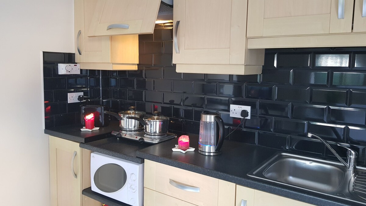 Disfruta de una experiencia elegante en este lugar céntrico. planta baja, puerta de entrada propia, apartamento moderno, recientemente renovado con estacionamiento privado dedicado. A 1 minuto a pie de todos los servicios/restaurantes/pubs/discotecas camas y ropa de cama cómodas de lujo, cocina totalmente equipada para todas tus necesidades culinarias WiFi y TV inteligente de 44pulgadas de pantalla plana LED grande duchas eléctricas y agua caliente instantánea, calefacción eléctrica de aluminio caliente.