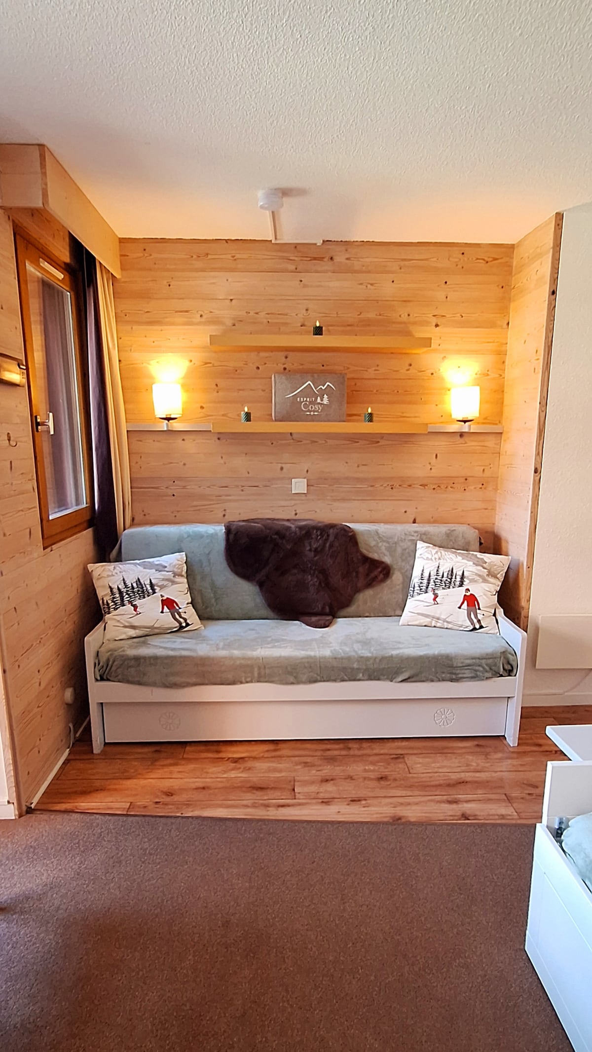 Estudio cabaña reformado de 17 m2, ideal para 2 personas, pero con capacidad para 4 personas Dispone de 4 camas, un sofá cama doble en el salón y 2 camas plegables en la entrada A 2 minutos a pie de los remontes (150 m) y cerca de todos los comercios, una parada de transporte gratuito está justo debajo de la residencia El apartamento dispone de lavavajillas, cafetera, tostadora y hervidor de agua, así como de armario para esquís Se incluyen sábanas, toallas y limpieza Wifi gratuito