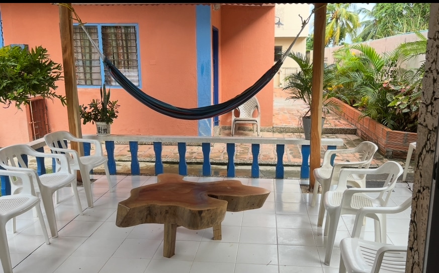 Esta casa rústica con vista al Caribe es perfecta para familias o grupos de amigos. Situada a 7 minutos del parque central del Tolú y a 5 minutos de la playa del francés. Espacios: Piscina tipo tanque con vista al Mar, kiosko, hamacas, sillas playeras y un comedor al aire libre. -7 habitaciones con ventilador y aire acondicionado. -Cocina equipada -Capacidad: hasta 16 personas. -Wi-Fi gratuito, servicio de limpieza básico incluido ( no incluye cocina ni lavado de ropa ). -Cuidandero 24/7.