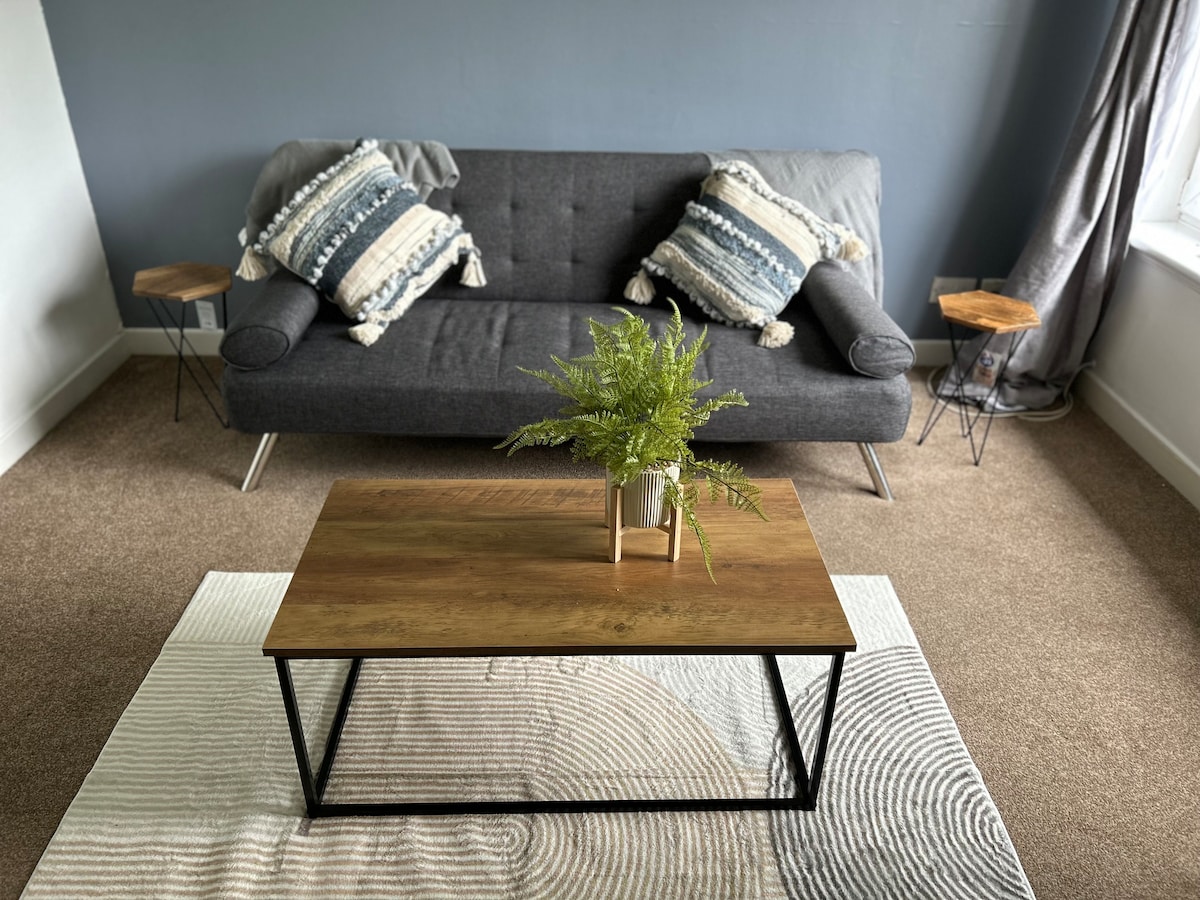Inmaculado apartamento de nueva construcción (2019) que ha sido recientemente amueblado y decorado con un alto nivel en enero de 2021. El apartamento se encuentra debajo del castillo de Stirling (a 15 minutos a pie), con vistas al monumento nacional William Wallace (a 10 minutos en coche) y las impresionantes colinas de Ochil. Hay un gran supermercado muy cerca del apartamento (a 5 minutos a pie). El apartamento es perfecto para los huéspedes que quieran visitar Stirling y más allá por trabajo o por placer. Quedamos a la espera de tu llegada ;-))