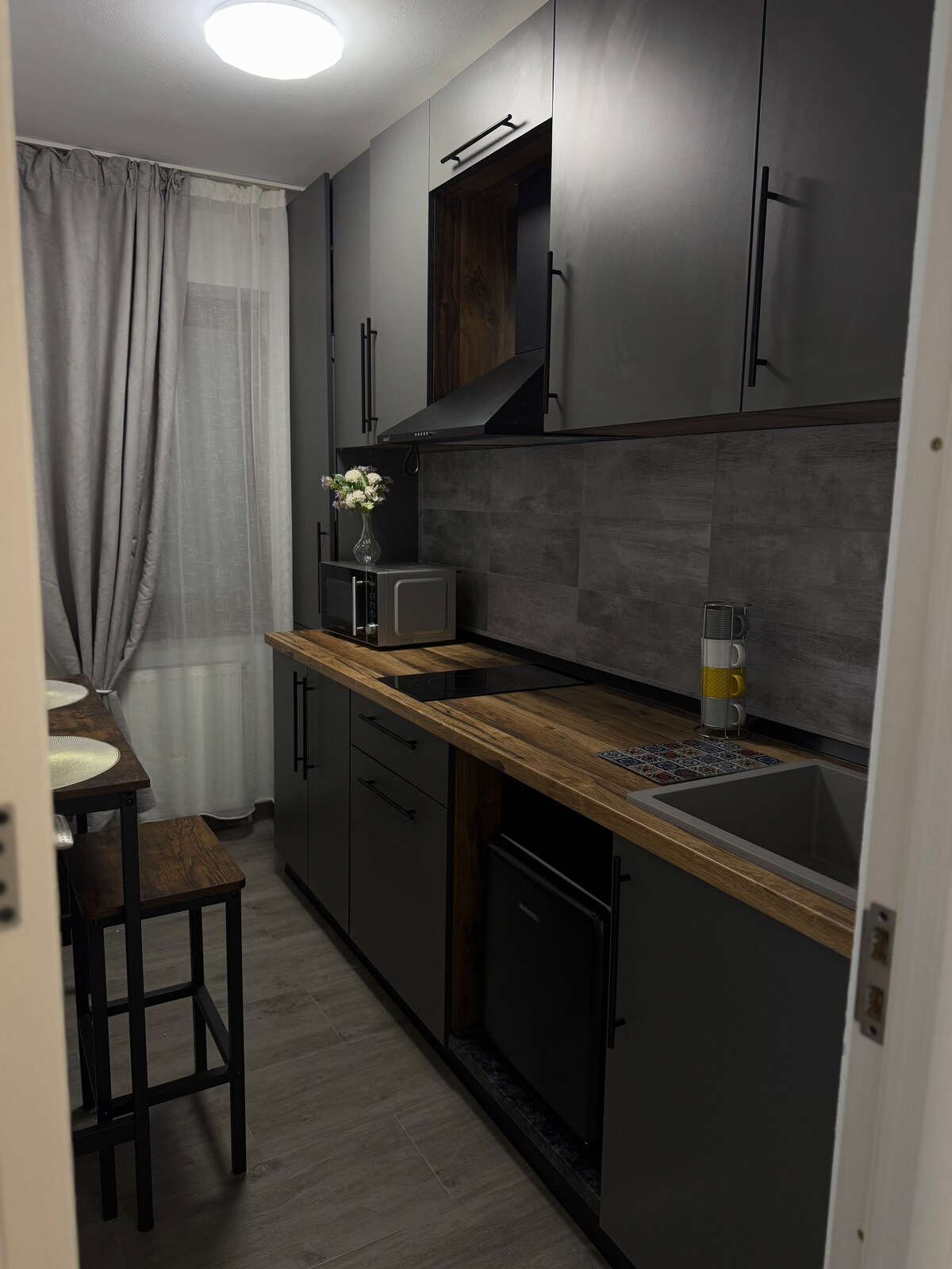 Situat perfect în centrul orașului, apartamentul te aduce aproape de Târgul de Crăciun Craiova, Centrul Vechi și Muzeul de Artă. Oferă vedere frumoasă spre zona centrală și a fost modernizat în 2025: pat și dulap noi, canapea confortabilă, aer condiționat nou, mașină de spălat și dotări premium pentru un confort de lux. Te poți relaxa în living sau te poți odihni într-un dormitor primitor, având tot ce îți trebuie pentru a te simți ca acasă.