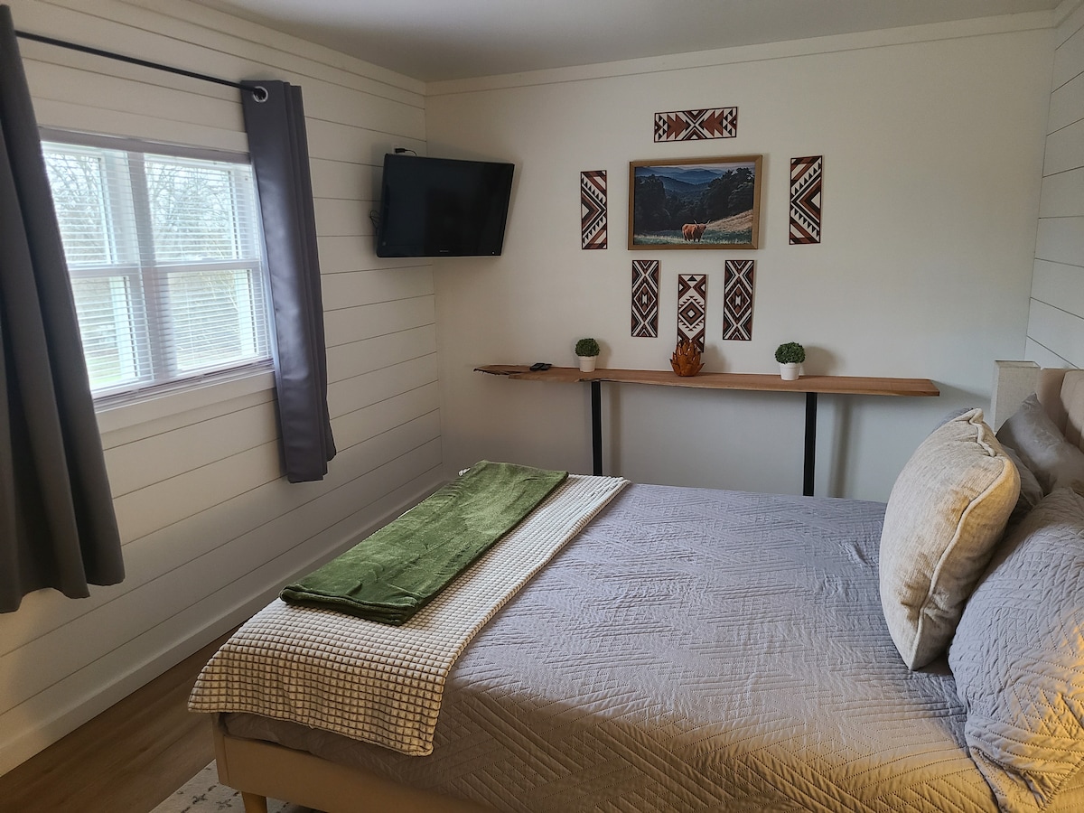 Esta tranquila, encantadora, privada, multihabitación forma parte de una casa de alojamiento más grande ubicada en los pintorescos Ozarks, a las afueras de la histórica Cuba, MO. Este sótano con un dormitorio, un baño y una sala de estar es perfecto para desconectar y conectar con la naturaleza, contigo mismo, tu pareja o los 3 mientras disfrutas de la abundante vida silvestre. Siéntate alrededor de la hoguera disfrutando de la contemplación de las estrellas mientras te acurrucas entre el bosque de Ozark. Situado a 5 millas de Scott's Ford y a 4 millas del acceso público de Riverside en el río Meramec.