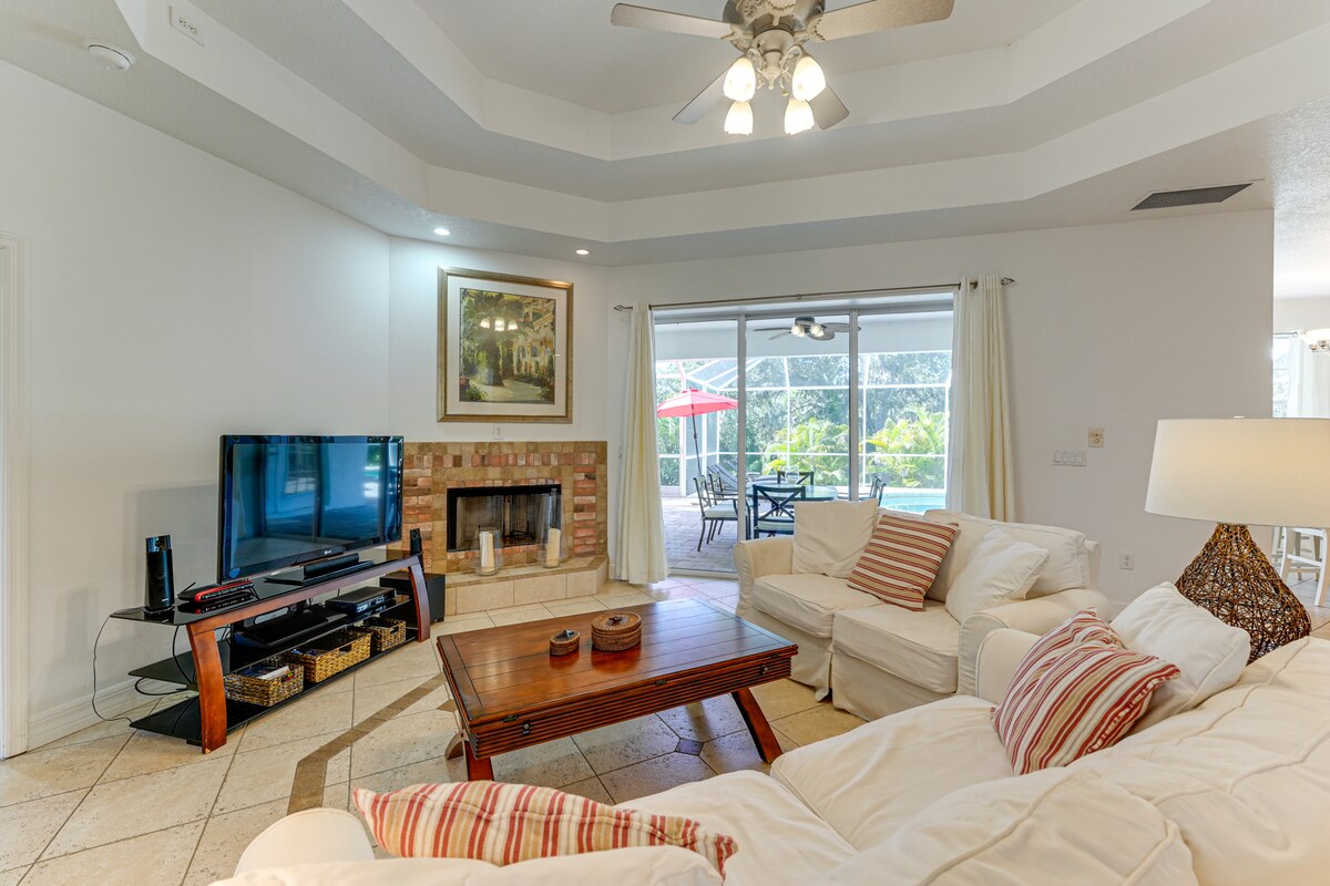Tu familia estará cerca de todo cuando te hospedes en este alojamiento céntrico. A 15 minutos de Siesta Beach, a 10 minutos del centro comercial UTC, a 15 minutos del centro de la ciudad y a 20 minutos del aeropuerto SRQ. Esta casa está totalmente remodelada, totalmente amueblada, capacidad para 8 personas. Tenemos 1 cama tamaño king en el dormitorio principal, el segundo dormitorio tiene una cama tamaño queen, el tercer dormitorio tiene 1 cama completa y 1 cama individual. Esta es una casa de planta abierta con una gran sala de estar, TV de 60 pulgadas sobre la chimenea eléctrica, comedor formal con capacidad para 6 personas y bar con capacidad para 4 personas. El dormitorio principal tiene TV de 55 pulgadas.