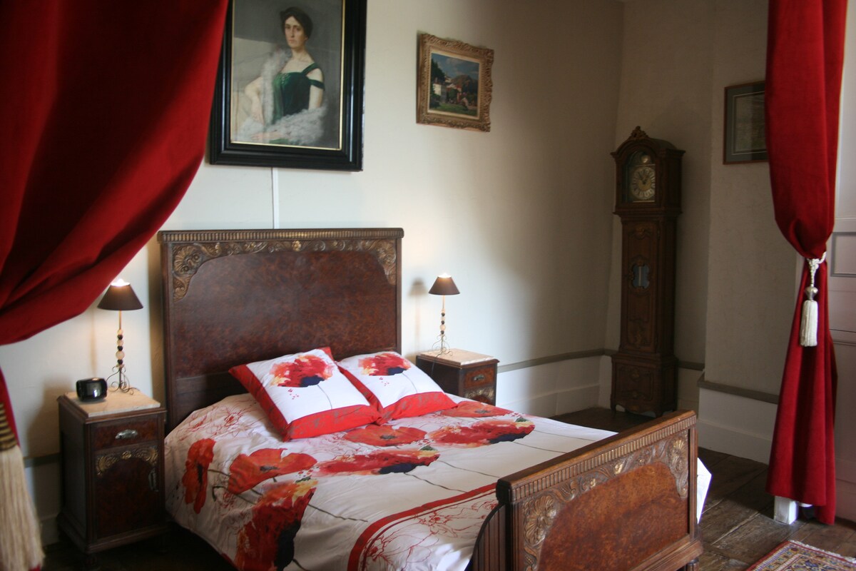 Gran habitación de huéspedes situada en la primera planta de la mansión. Restaurada respetando el trabajo de los antiguos con muebles de época. Sin embargo, el confort moderno está a la altura con una gran pantalla, wi-fi y las comodidades necesarias para hacerse una bebida caliente (cafetera expreso, hervidor de agua). Cuarto de baño y aseo privados.