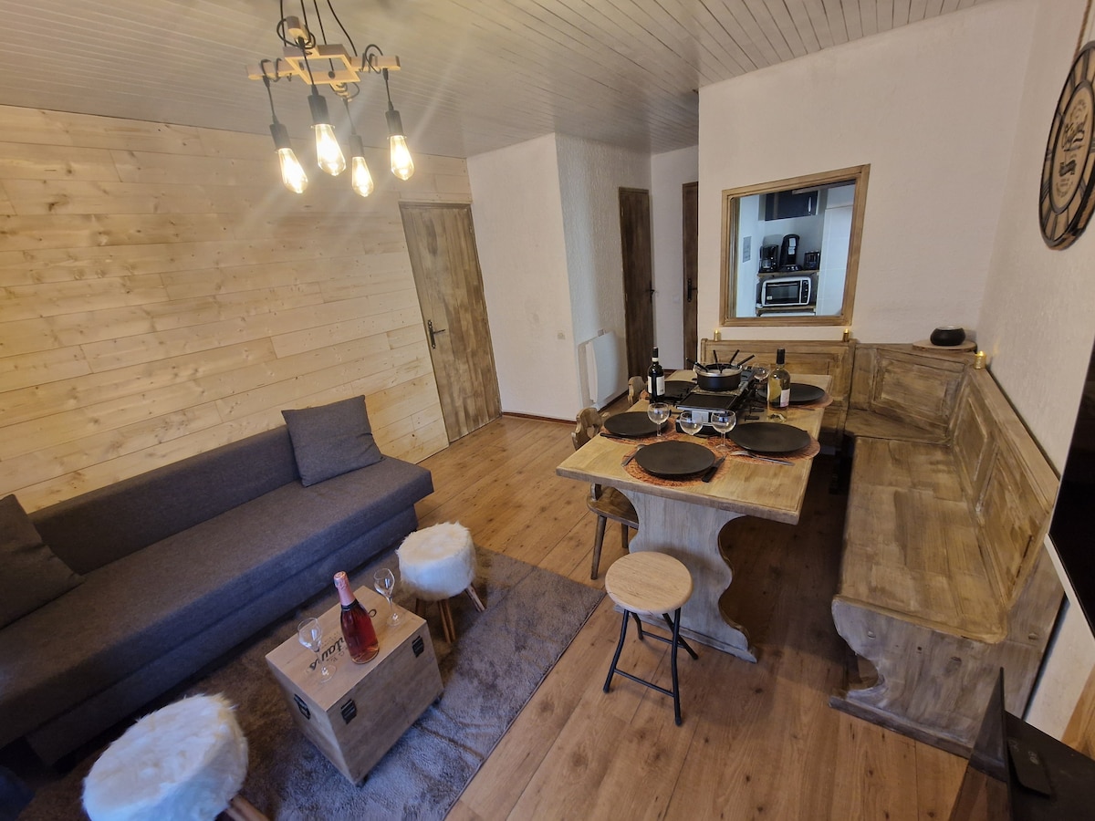 Situado en el corazón de la estación Bois Méan 1800, encantador apartamento para 4/6 personas, con balcón, dos dormitorios (1 cama de matrimonio y 2 camas individuales), una sala de estar (una cama convertible para 2 personas, televisión de pantalla plana), una cocina equipada con lavavajillas y un baño. También dispondrás de un armario para esquís con vistas a las pistas. Podrá disfrutar de una sauna y de una piscina exterior climatizada a 33°. Las tiendas y los restaurantes están al pie de la residencia.
