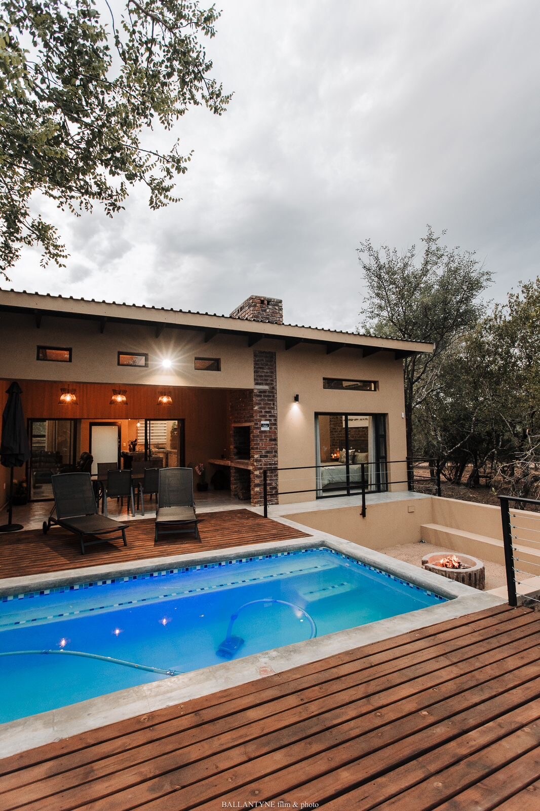 Birdsong is a private, self-catered, and solar-powered house in a wildlife conservancy adjoining Kruger National Park. Relax on the downstairs outdoor lounge with heated pool as zebra, kudu, and many others stop by to visit. Watch the sun set from the hammock on the upper patio. Exercise in the gym space. And if you just can't get away from work, there is a large table upstairs with a beautiful video background! Birdsong is just 15 minutes from Kruger's Crocodile Bridge gate.