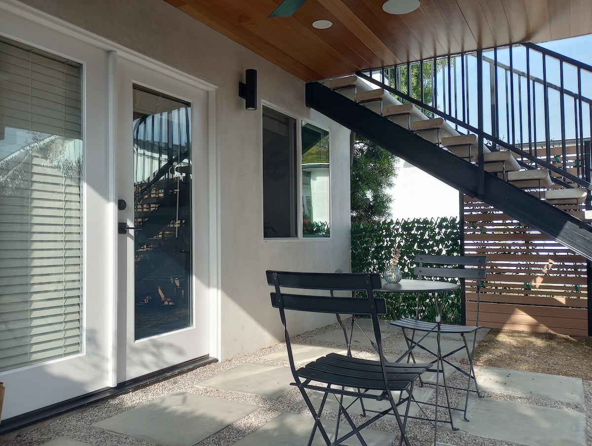 Hermosamente decorada, privada, casa de huéspedes de dos pisos con tragaluces en la sala de estar y el dormitorio ofrecen abundante luz natural. Muebles tapizados de lino lujoso y la cama y sábanas más lujosas que jamás haya experimentado. Es la combinación perfecta de ubicación tranquila, privacidad, comodidad y conveniencia. La casa de huéspedes es respetuosa con el medio ambiente y se mantiene con productos seguros para el medio ambiente y la tierra. Por favor, revisa mi anuncio completo y las normas de la casa antes de reservar.