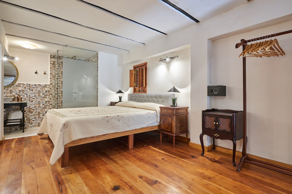Suite Privada de Lujo en Varadero Solo para 2 adultos, situada a 250 metros de la playa. Un espacio que combina comodidad, intimidad y sofisticación. Terraza privada con jacuzzi. Cama king size y baño privado con agua caliente, secador de pelo y variados amenities. Toallas: de baño, de mano y de playa. TV LED, WIFI, Minibar, Cafetera y Tetera. Climatización split, ventilador, clóset con perchas y caja de seguridad. Servicio de limpieza diaria y cambio de lencería incluidos.