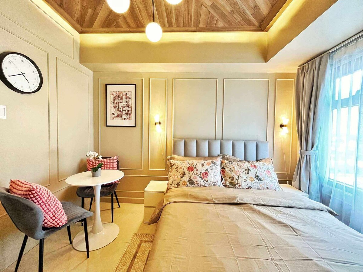 ¡Bienvenido a nuestro acogedor y cómodo apartamento con vistas al icónico Araneta Coliseum! Es la opción perfecta para aquellos que asisten a eventos o conciertos allí. El interior minimalista crea un ambiente tranquilo, ofreciendo un refugio sereno del ajetreo y el bullicio de la ciudad. Además, puedes disfrutar de tranquilos paseos y hacer fotos en el hermoso jardín ubicado en el cuarto piso, añadiendo un toque de naturaleza a tu estancia.