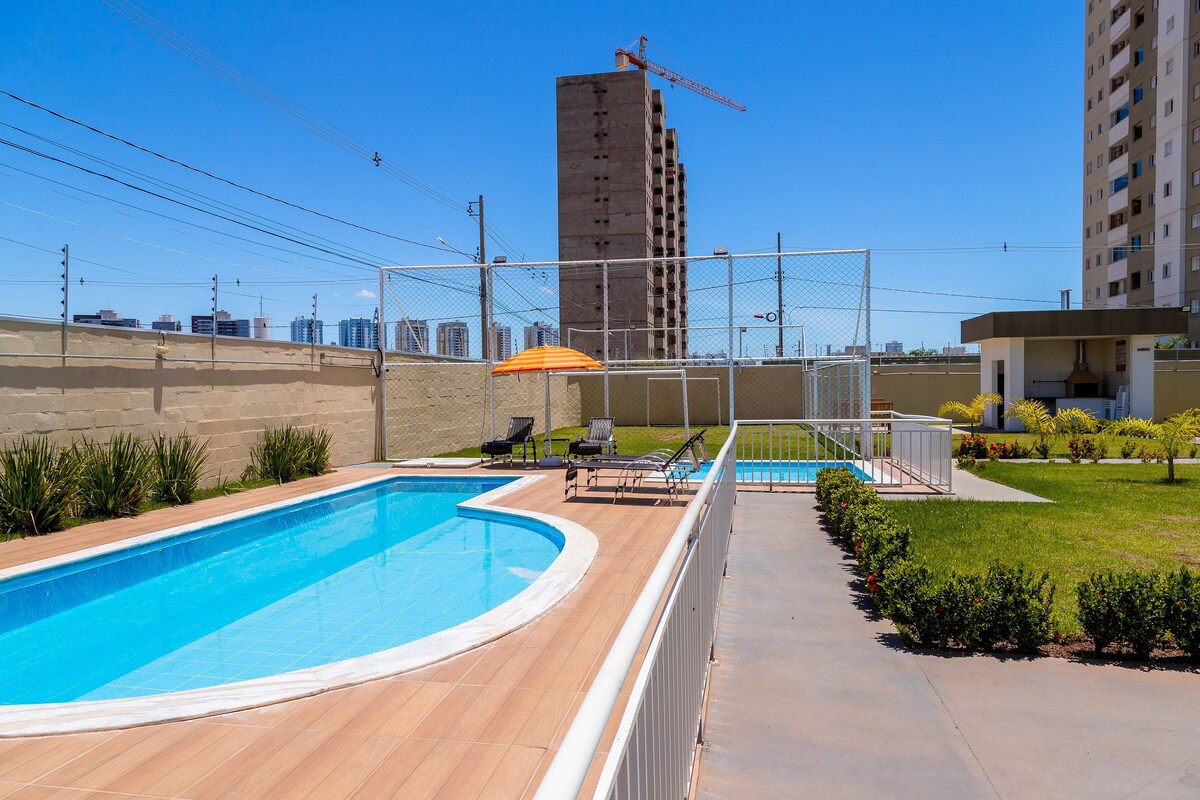 Apartamento familiar, cómodo, todas las habitaciones con aire acondicionado, amuebladas, utensilios de cocina y lavadoras, TV inteligente de 50'', WIFI de fibra óptica, pantallas protectoras en las ventanas/balcón, 1 espacio de garaje cubierto. Condominio tranquilo, cámaras de seguridad y conserje las 24 horas, excelente ubicación (cerca del Hospital S. Mateus, C. Politico (TRT, TRE, TJ), Tienda Pantanal, Havan, C. Eventos Pantanal), plaza frente al edificio, minimercado market4up (pago a través de la aplicación). PISCINA EN RENOVACIÓN.