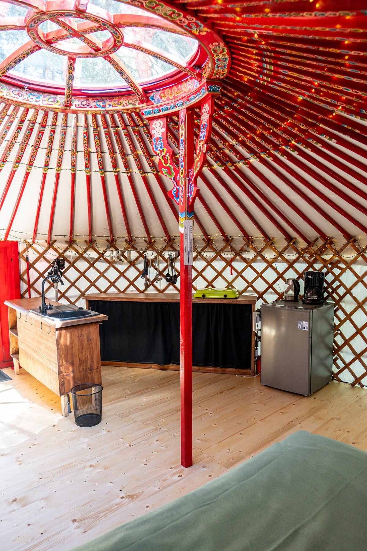 Una experiencia extraordinaria en una verdadera yurta mongola con una estancia durante todo el año en un hermoso paisaje. A solo 40 minutos de Praga. Construido en diciembre de 2022. Adecuado para momentos románticos en dos, aventuras con amigos o excursiones de senderismo. NO se admiten familias con niños pequeños. Capacidad para hasta 5 personas. La yurta está en la naturaleza, así que es posible que a veces haga calor o algunos mosquitos .