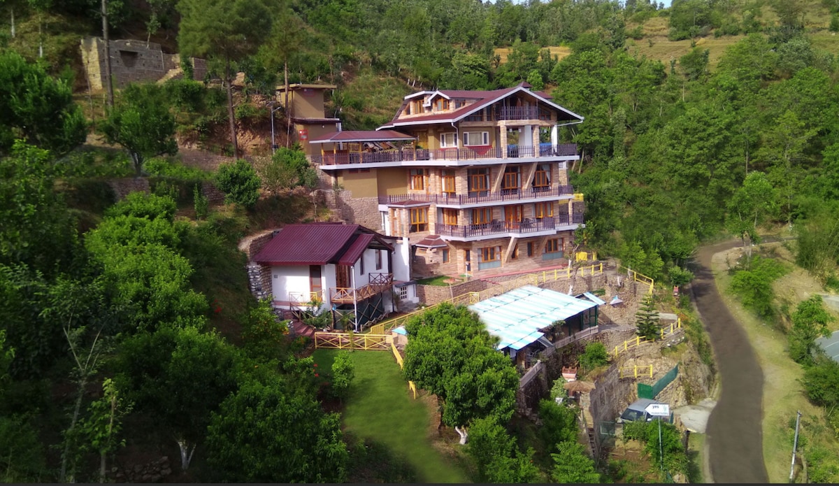 Garden Courts Villa, a stunning 7-bedroom villa near Solan, just a 6-hour drive from Delhi. Nestled within 7 acres of lush greenery, this serene retreat is surrounded by peach plum trees, flourishing kiwi and lemon plants, manicured lawns, and vibrant gardens. Villa features AC in every room for your comfort. Enjoy an authentic farm stay experience, with a kids' play area for the little ones. Wander through our orchards, savor fresh produce, reconnect with nature to rejuvenate your soul.