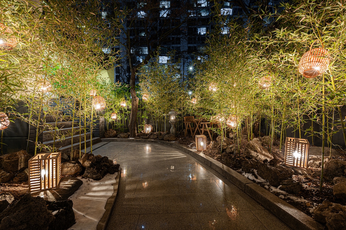 🏆Best Seoul Stay 2024 Excelente Seoul Stay 📌de lujo, Hanok entero, privacidad perfecta, El Bukchon Hanok Village es un lugar de rodaje de varios programas de entretenimiento y transmisión de Corea del Sur, y se divide en dos propiedades privadas, Heritage y Retreat. Las dos casas hanok están completamente separadas por puertas y muros diferentes, lo que garantiza la privacidad de un solo equipo. [Casa clásica Bukchon Re:treat] Retiro es una palabra que significa huida o retirada, y Classic House Retreat ofrece una privacidad perfecta y un espacio acogedor como un refugio secreto en medio de la ciudad, rodeado de un bosque de bambúes, como si estuviera aislado del mundo. Es un alojamiento de lujo para dos personas, que ofrece las mejores comodidades y un lugar de descanso preparado solo para dos personas, que es cálido en invierno y fresco en verano. Consta de un dormitorio conectado a una sala de meditación y té, una pequeña cocina y un baño y ducha pequeños pero elegantes, y un jacuzzi al aire libre para dos personas con vistas al bosque.