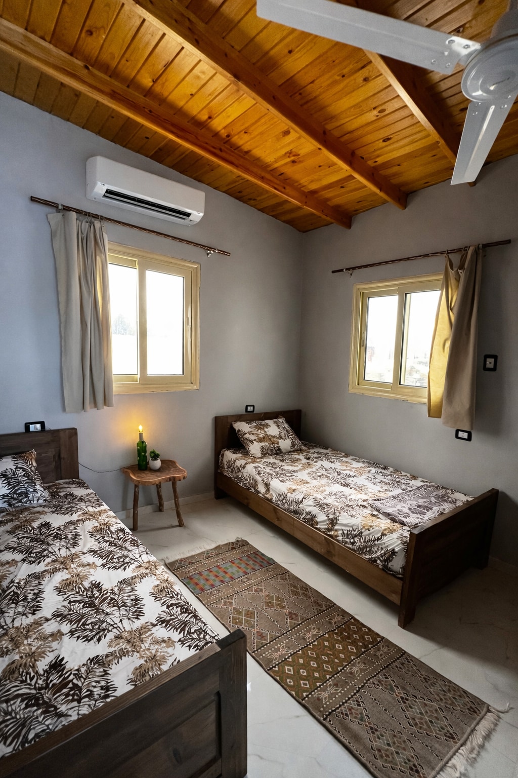Tucked away in a quiet local neighborhood, this hidden Dahab gem offers comfort and privacy with a true sense of retreat, while still being only an 8-minute walk from the lively Lighthouse area and the beach. Wake to the sound of roosters and enjoy your morning coffee in the garden. At sunset, head up to the rooftop for sweeping views of Sinai’s changing colors, then end the evening around the peaceful garden fire under a sky full of stars, with the city glowing in the distance.