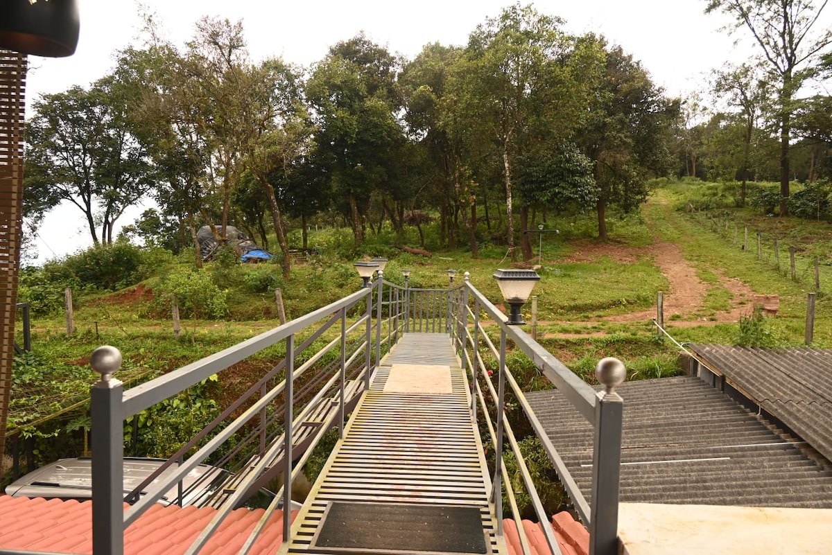 Estamos situados en una ubicación tranquila y serena, en medio de una plantación de café, con unas vistas hermosas, rodeados de una exuberante vegetación. Tenemos una habitación privada. Servimos comida bufet sabrosa, higiénica y tradicional de estilo Malnad. Tenemos un gran jardín en el patio delantero. Ofrecemos actividades, como: hoguera, bádminton, juegos de interior, Trail Walk in the Coffee Estate. Puedes conocer cómo se cultivan y cosechan el café y la pimienta; mientras te relajas entre los sonidos de los pájaros cantando.