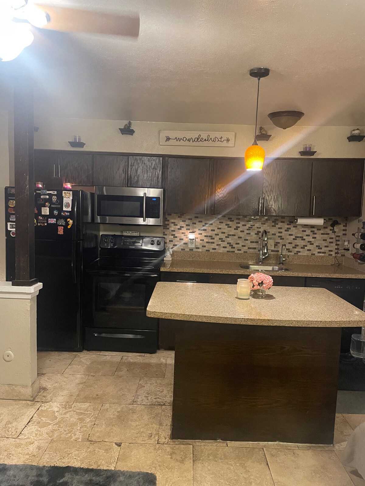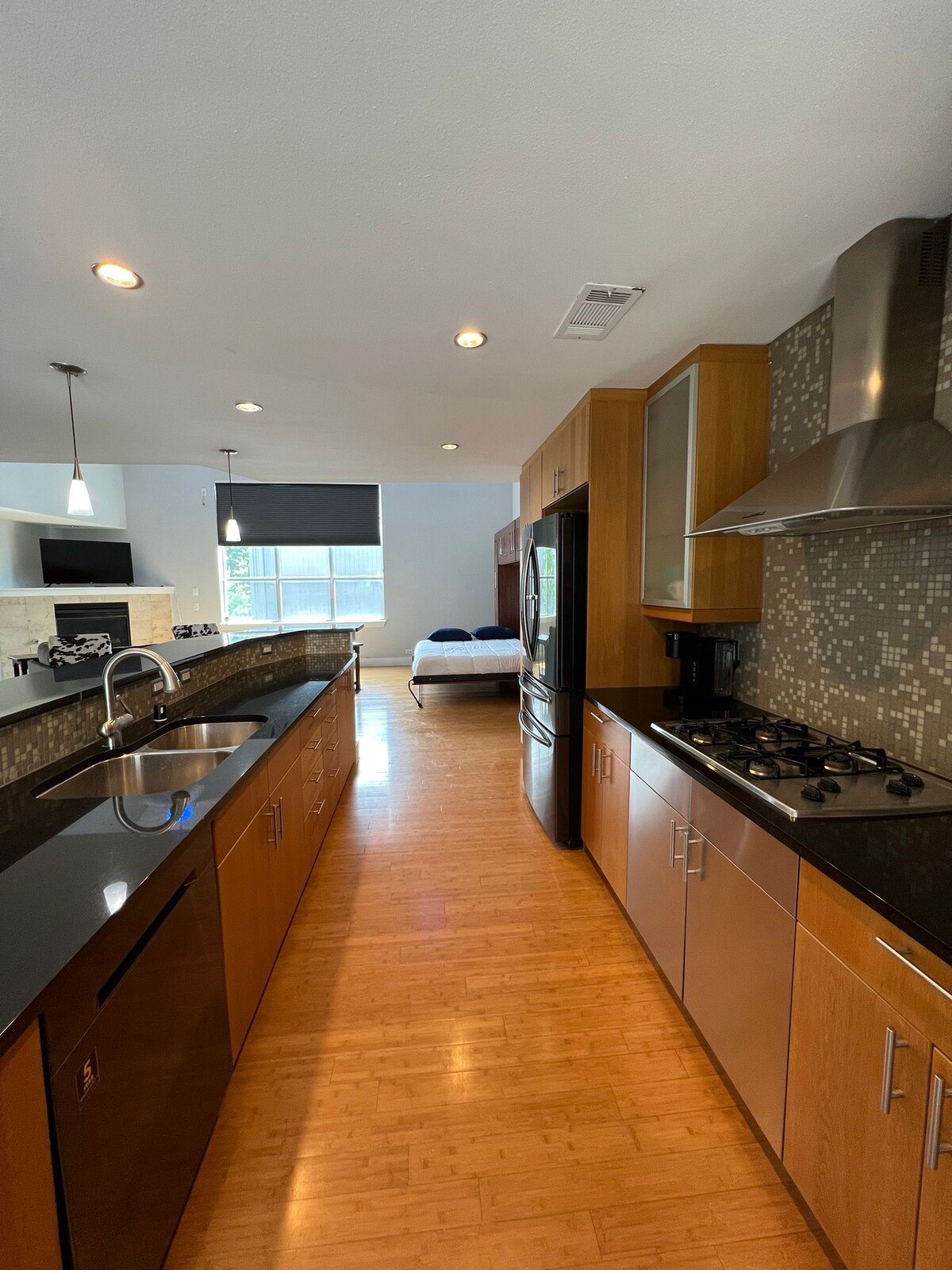 Impresionante loft de lujo de estilo europeo de 1200 pies cuadrados. Totalmente amueblado/planta abierta/suelos de madera/barrio residencial tranquilo. Cama tamaño king, con (colchón de aire queen lujoso y cómodo a petición). Comedor para 4 personas, sala de estar con TV de 50 pulgadas, Roku, Internet/WiFi, zona de oficina. Cocina gourmet amueblada: encimeras de granito/electrodomésticos de acero inoxidable. Toallas y sábanas. Entrada/garaje privado. Lavandería: lavadora/secadora/plancha/tabla de planchar/1/2 baño compartido con la segunda unidad. Sistema U/V. Tu «hogar lejos de casa».