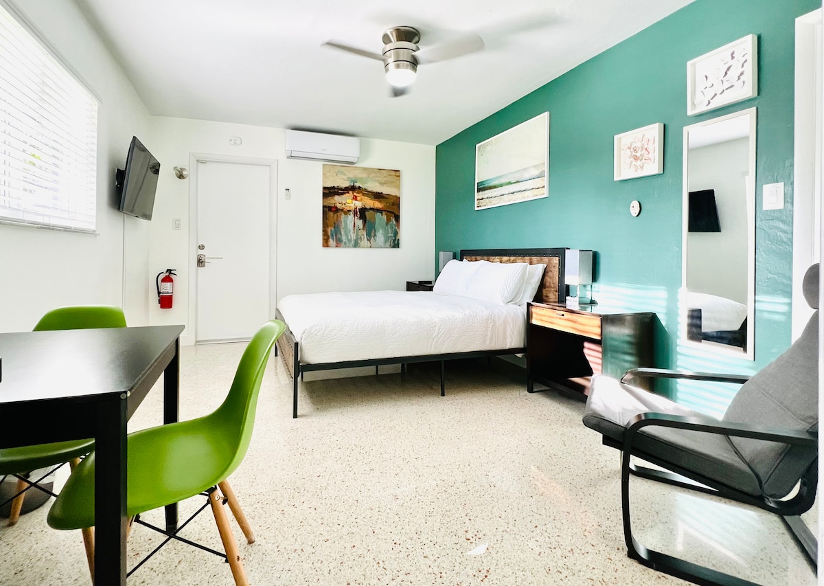 Rest and enjoy in our private studio located a few steps from Wilton Drive, 10 minutes drive from Las Olas beach one of the best in Fort Lauderdale Beach Perfect for couples, solo explorers, and family vacations! The place sleeps 2 people, with a king bed. Total privacy, it has its own private entrance, parking and a beautiful and quiet patio. Completely clean and disinfected before your arrival.