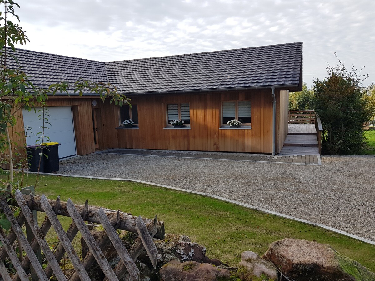Situado en el borde del bosque, en un encantador pueblecito, se puede disfrutar de una naturaleza excepcional, así como de un rico patrimonio entre Alsacia y Mosela. Te daremos la bienvenida en una casa ecológica de madera con entrada independiente, hecha con materiales de calidad en un espíritu contemporáneo, tiene una terraza independiente con pérgola. El alojamiento de una sola planta es adecuado para parejas con un niño pequeño o para viajeros de negocios.