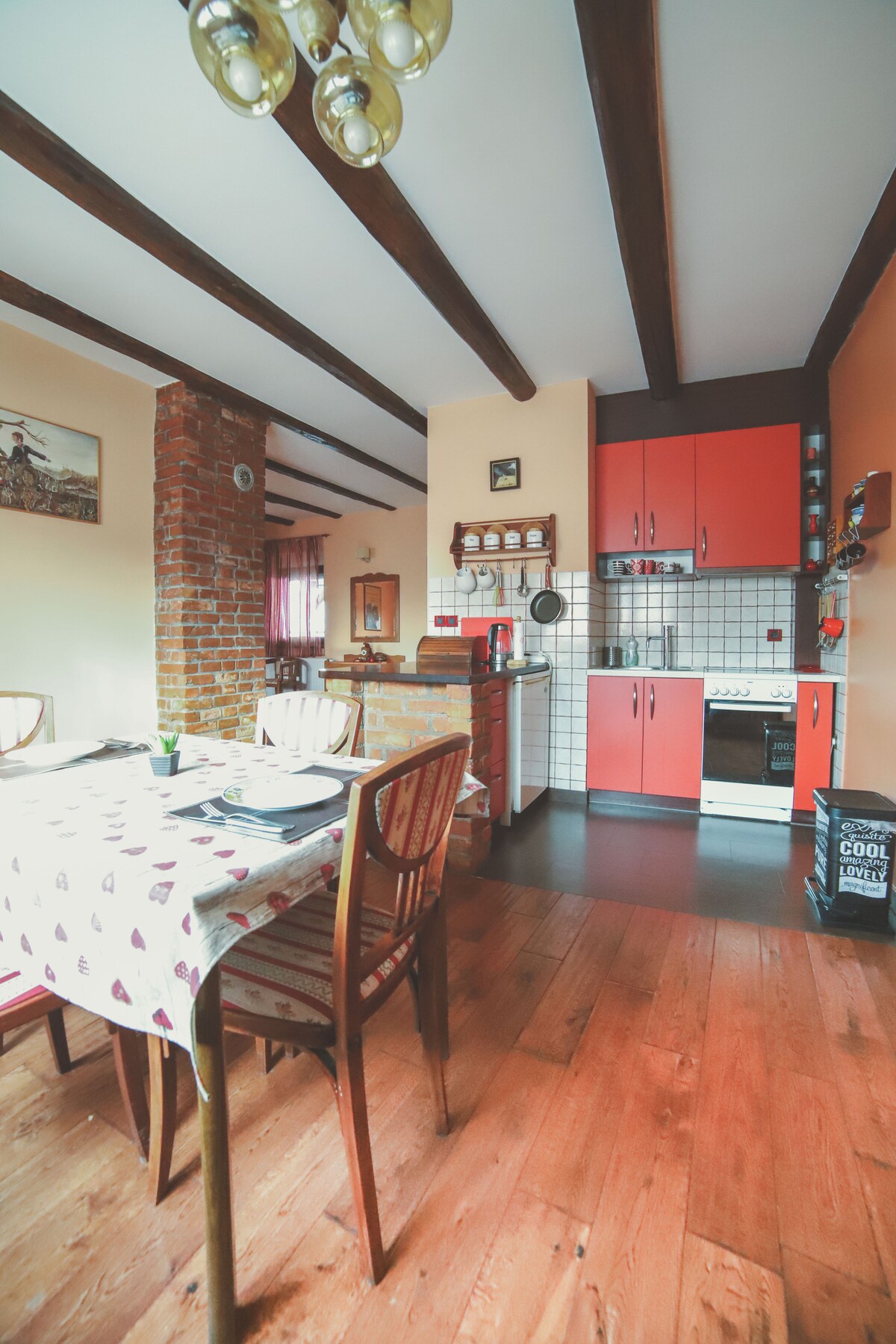 Hermoso apartamento decorado en una combinación de lo antiguo y lo nuevo en una ubicación tranquila con un patio común, barbacoa y una plaza de aparcamiento. Adecuado para familias con niños, parejas y viajes oficiales. Posibilidad de alojamiento en viajes cortos, pero también estadías más largas (servicio de lavandería). El departamento se encuentra a 200 m del centro de la ciudad cerca de: - La tienda -restoran - Instalaciones culturales. - El hospital - barras y cafés
