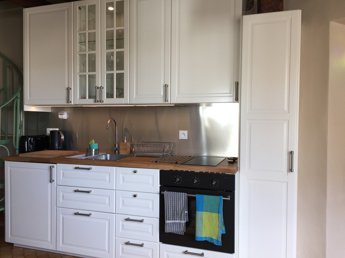 Encantadora casa totalmente renovada , tranquila , luminosa , con WiFi que se abre a gran terraza y jardín cerrado, cómodo, ideal para parejas/2 niños o 3/4 adultos . En la planta baja un espacio abierto con sala de estar 2 sofás cama, tv, comedor ,cocina totalmente equipada. 1 aseo, lavabo. Arriba, cómoda pequeña habitación bajo los tejados con vistas a la terraza ,cama de 190x140 cm,TV, vestidor y mueble de almacenamiento ,pequeño baño con ducha italiana, lavabo ventana, 1wc. VMC