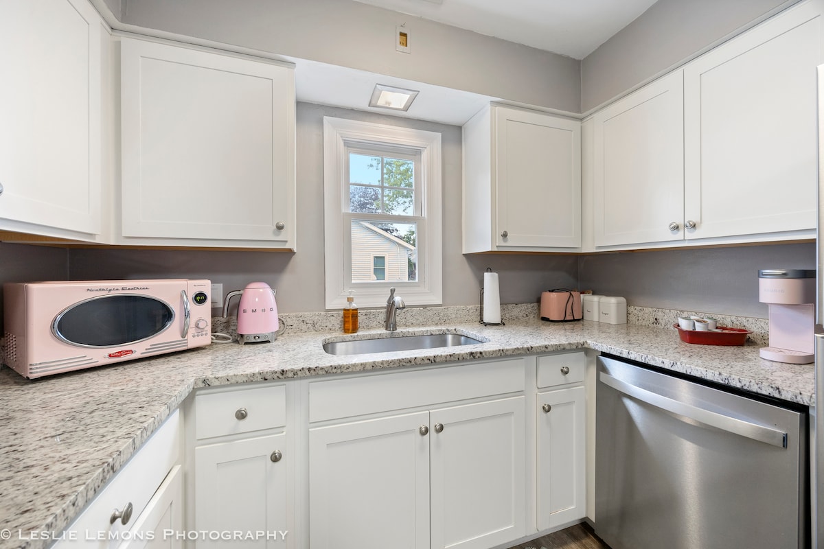 ¡Encantador apartamento vintage! Apartamento de 1935 en el garaje de una casa de Sears Craftsman Coach House. ¡Hermoso barrio seguro rodeado de casas históricas y a pocos pasos del sendero de la pradera de Illinois, parques, cervecerías/bares, restaurantes y mucho más! Con un ambiente boho chic ecléctico, cocina completa y lavadora/secadora privada en el sitio. ¡Con vistas a un precioso patio trasero accesible! Cerca de aeropuertos y con fácil acceso al transporte público/carreteras principales. ¡A solo 30 minutos del Chicago Loop!