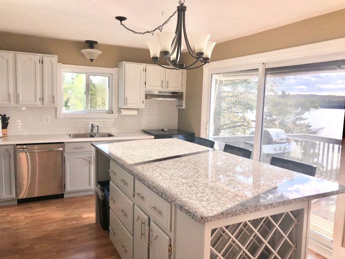¿Buscas unas vacaciones tranquilas o necesitas un lugar para ponerte en cuarentena antes de visitar a familiares o amigos? El cabo es perfecto durante todo el año, ubicado en Shad Bay, a solo 25 minutos del centro de Halifax y a 15 minutos de Peggy's Cove. Tiene unas vistas espectaculares desde su terraza trasera de dos niveles, muelle de 50' y tu propia playa privada, donde puedes disfrutar del agua, la arena, los juguetes de playa, 2 kayaks y tabla de paddle surf. Con puertas de patio a lo largo de la parte posterior, la cocina, el comedor y la sala de estar principal tienen unas vistas impresionantes.