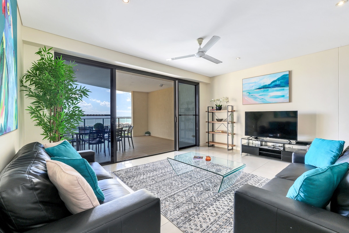 Apartamento de❶ lujo «Penthouse en la planta superior» Vistas ❷ privilegiadas «frente» a la piscina de olas de Darwin, la laguna de playa y el centro de convenciones. ❸ Cafeterías, restaurantes y bares de vinos «abajo» + acceso con ascensor. A ❹ 5 minutos a pie del centro de negocios de Darwin a través del ascensor y el puente elevado. Aparcamiento subterráneo «seguro/privado»❺ gratuito x2 + acceso al apartamento por ascensor. ❻ Aire acondicionado en todas partes. Cocina ❼ completa y zona de barbacoa al aire libre. Se admiten❽ mascotas con un peso inferior a 10 kg según las normas de la comunidad 🐾❤ de propietarios. Condimentos básicos❾ orgánicos proporcionados. ❿ Ubicación, ubicación, ubicación.