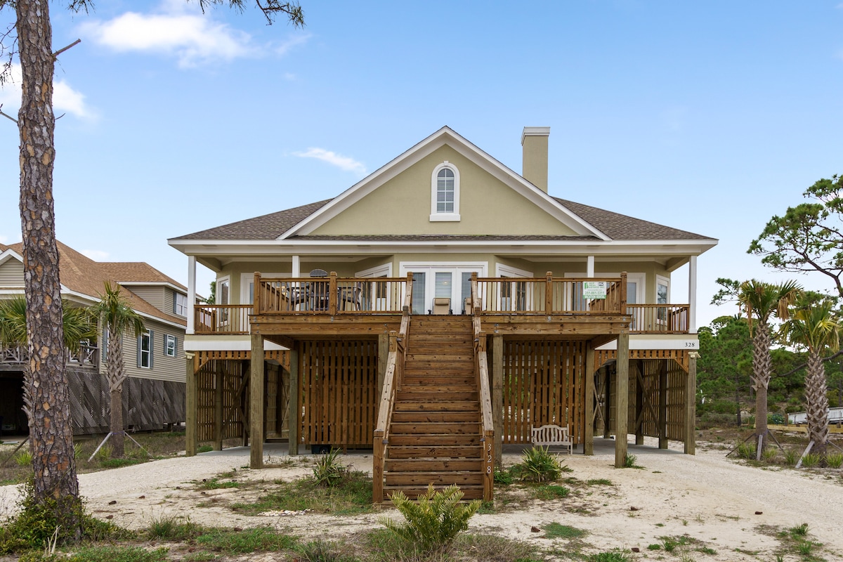 Construcción más nueva con impresionantes vistas al golfo (la casa está en ángulo en el lote para disfrutar de las mejores vistas del Golfo). ¡A solo unos pasos de la playa! Aproximadamente 1900 pies cuadrados de espacio habitable. Hermosos azulejos de tablones de madera en toda la casa, muchas ventanas y amueblados en un estilo contemporáneo. La casa tiene una cubierta superior e inferior con ducha. La casa tiene excelentes comodidades, como un televisor inteligente de 65" y un reproductor de DVD en la sala de estar. Todos los dormitorios tienen televisores inteligentes de 40". Se proporciona red de platos y Internet de fibra rápida. Lavadora y secadora en el interior