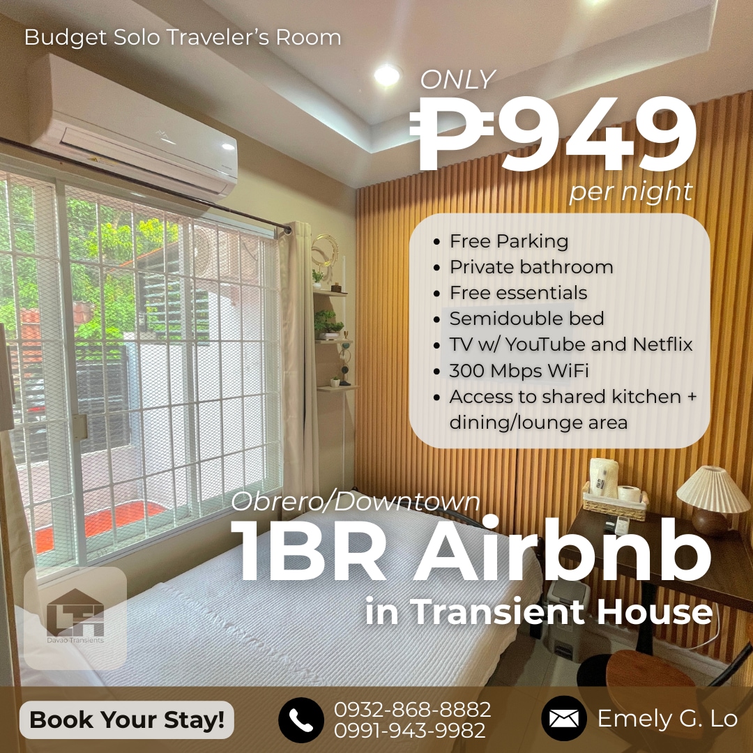 Casa adosada Navona Subdivision 2 con lugar de estacionamiento. Relájate con toda la familia en este tranquilo lugar para hospedarse. 2 dormitorios con conexión Wi-Fi de fibra ilimitada y esto es perfecto para estancias familiares. Cancha de baloncesto de seguridad las 24 horas, 7 días a Totalmente amueblada lista para mudarse 15 minutos en auto desde y hacia SM Ecoland/ S&R Davao 20 minutos en auto desde y hacia el Aeropuerto Internacional de Davao.