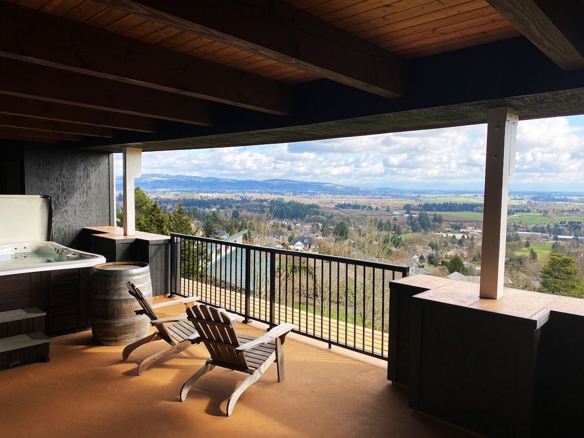 Disfruta de una vista panorámica de la región vinícola. Salas de degustación y restaurantes increíbles cerca. Harvey Creek Trail está a pasos de distancia. Muebles y acabados de alta gama Decoración personalizada y moderna, pero acogedora 2 suites King Master completas con lujosos baños de baldosas, lluvias extragrandes. Bañera de hidromasaje en tu propia terraza grande, cubierta y privada con vistas al valle. Cerradura electrónica en la puerta principal: fácil llegada. Lavadora/Secadora Privada, alojamientos separados. Estacionamiento para 2 vehículos estacionados en tándem en auto