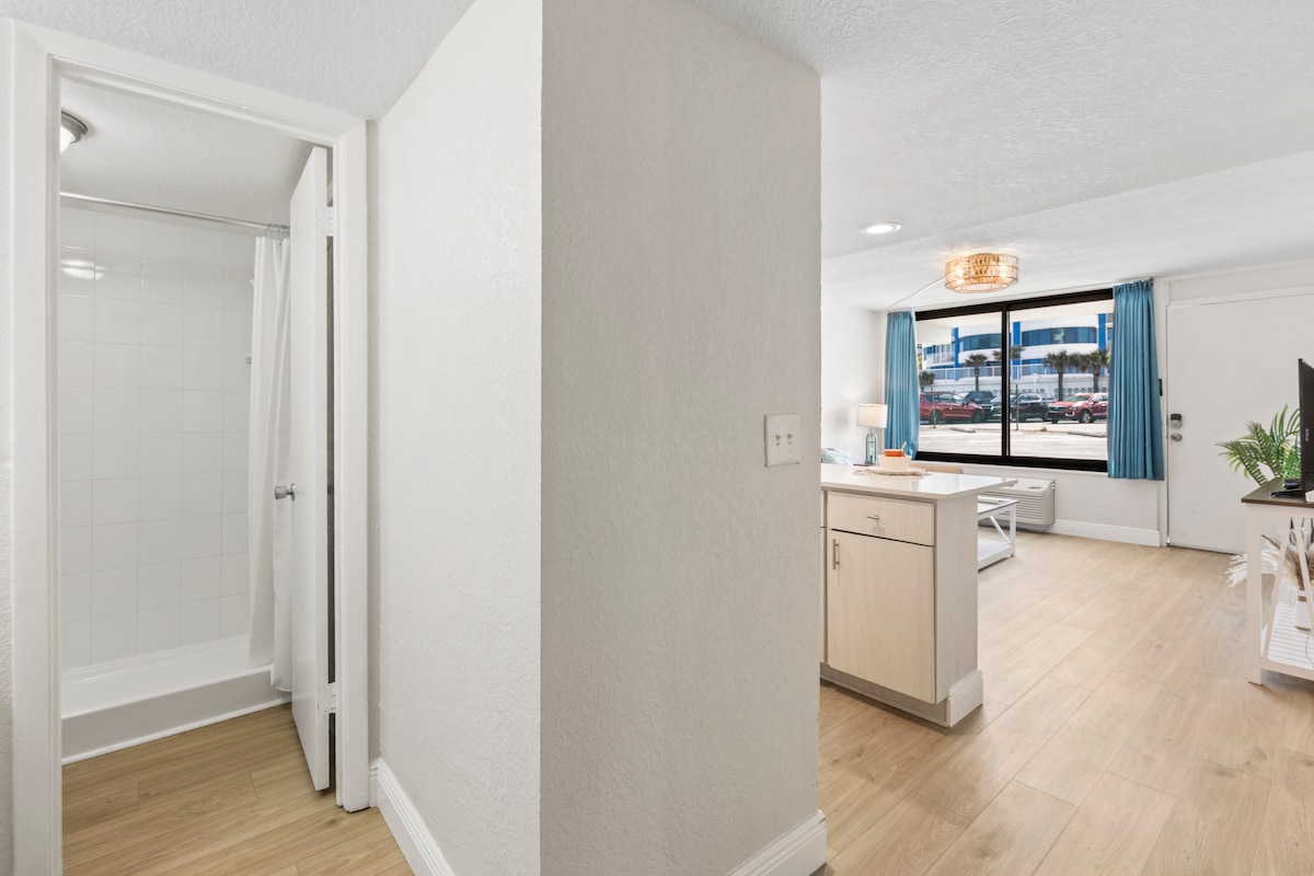 ¡Bienvenido a tu escapada perfecta a Daytona!Su estadía recientemente renovada está justo al lado de International Blvd y a unos pasos del Centro de Convenciones, Bandshell, Boardwalk, Daytona Lagoon, Ocean Deck, Crabby's, Landshark y tiene un bar tiki mundialmente famoso justo abajo.Ya sea que esté aquí para un evento, unas divertidas vacaciones familiares o una escapada romántica, nuestro espacio está diseñado para que su estancia sea inolvidable.¡Reserve ahora para asegurar su estancia en esta ubicación inmejorable, donde la conveniencia se une al confort!