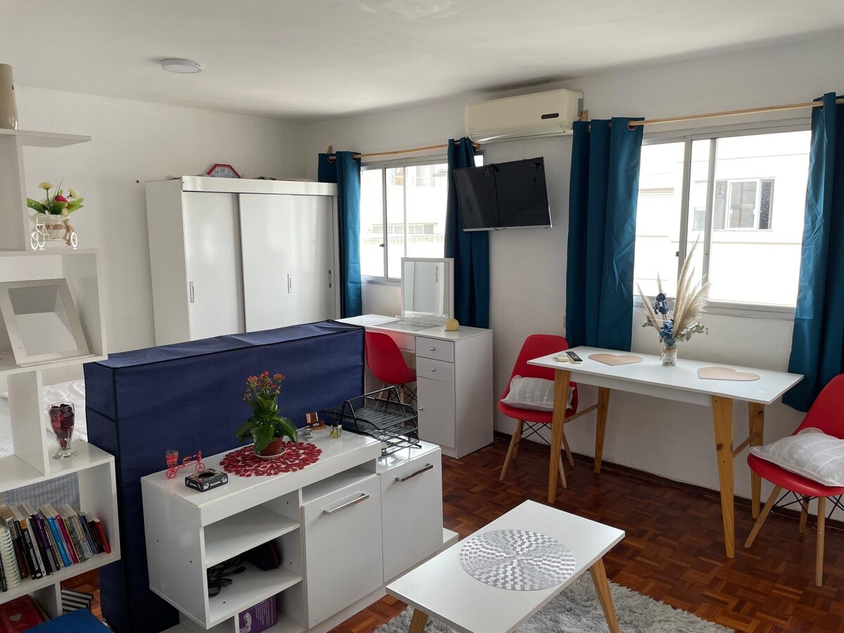 Apartamento céntrico a estrenar para hasta 3 personas, frente a Plaza Entrevero. Monoambiente muy luminoso con cocina integrada, baño completo, cama una plaza (rebatible), sillón cama de dos plazas. Totalmente equipado para 3 personas: ropa de cama (incluye abrigo), set completo de toallas, vajilla. TV Smart 40', Netflix. WIFI. Aire acondicionado Edificio nuevo, portería y ascensores. Ubicación ideal, pleno centro de Montevideo, a media cuadra de la avenida principal (servicios y transporte)