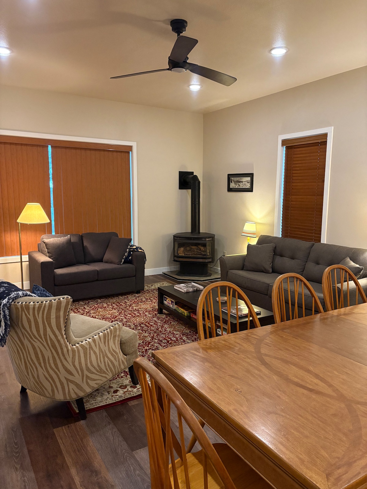 Fully renovated 1909 historic Deary house. Each bedroom provides room and comfort and a full bathroom for our guests. Modern well- equipped kitchen with just about everything you need to put on a feast. Open floor plan with the kitchen, dining room, and living room so everyone can enjoy each other while not feeling cramped. Wifi throughout the home, a TV, and a gas stove fireplace in the living room. Walk to Deary amenities, or head out on an adventure, this house will be your home base!