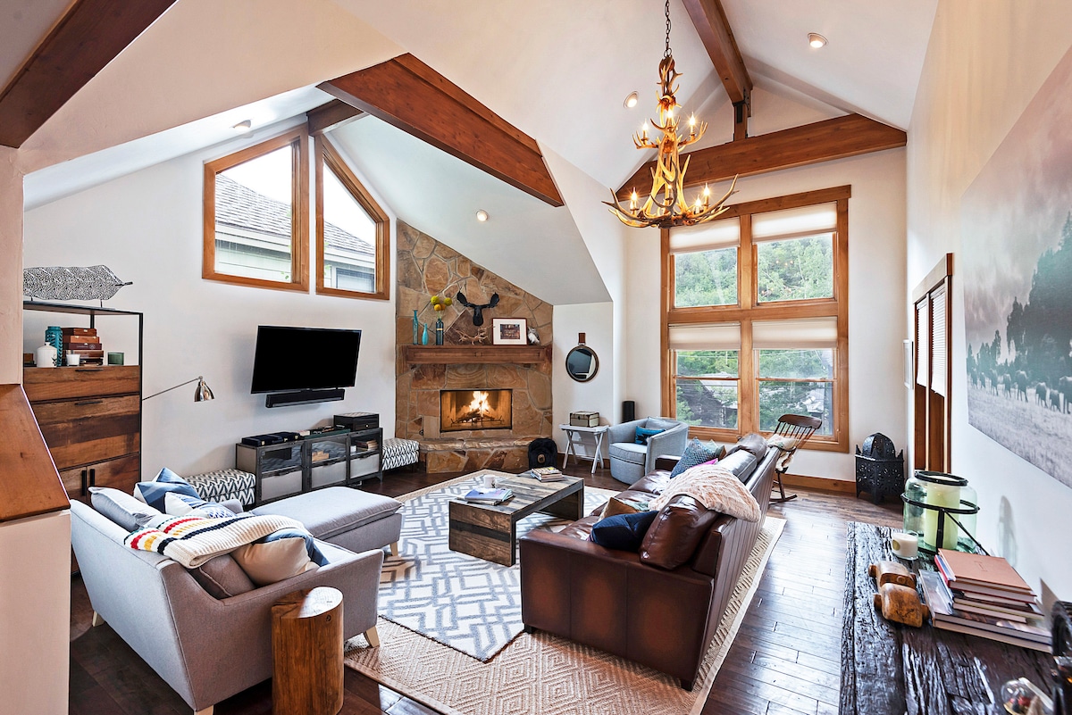 LOCATION LOCATION!! No worries on bracing traffic nor reserving / paying for Ski parking... you are here! Ski To/ From Quitn' Time, via City stairs to ski down to Skier Bridge/ Town Lift. Quick hike/bike access to Sweeny & Mother Urban trail heads. Easy access to Main St, 2 blocks behind No Name Saloon and all of festivities, dining plus nightlife. All less that 5 min walk. Super cute 1969 (Awarded) Contemporary Ski Chalet Apt on coveted Upper Woodside Ave.