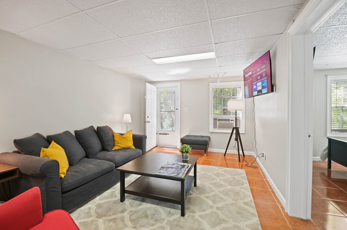 Your private, renovated Sandy Springs retreat—perfect for couples, families, remote work, and travel nurses. Safe, quiet, design-forward, with quick access to the greater Atlanta metro. ☑ Private entrance ☑ King Nectar bed ☑ Queen trifold floor mattress ☑ Queen sofa bed (great for kids) ☑ 328 Mbps WiFi + desk ☑ Full kitchen ☑ Washer + dryer ☑ Pack ’n play + toys ☑ EV charger ☑ Modern, calming design “Pictures don’t do it justice!” 7 mins → DT Dunwoody 15 mins → Alpharetta 25 mins → DT Atlanta