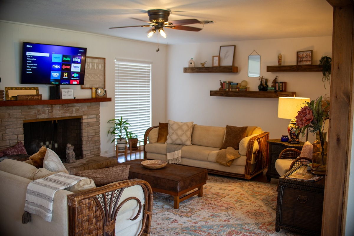 Relájate y recarga energías en Casa Elisa, una casa encantadora y cómoda a solo unos pasos de la piscina Buena Vista y a poca distancia en coche de los favoritos locales como Stripes, Chick-fil-A, el centro comercial, Panda Express, Starbucks y Dollar Store. Disfruta de detalles modernos como luces regulables para crear el ambiente perfecto y una parrilla privada al aire libre, ideal para cocinar al aire libre por la noche o barbacoas de fin de semana. Tanto si viajas por trabajo como por placer, Casa Elisa ofrece la combinación perfecta de comodidad, conveniencia y estilo.
