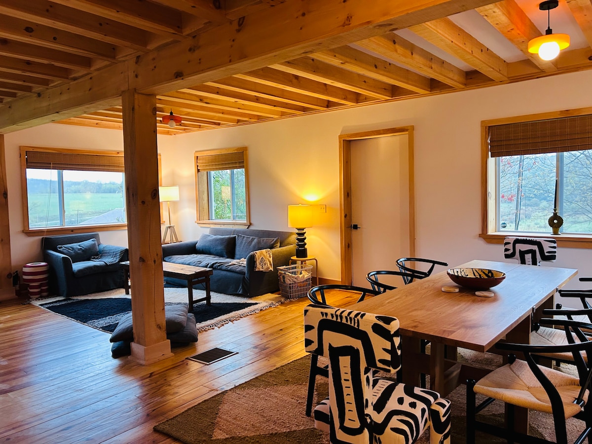 Bienvenido a PostBeamLove. Una idílica escapada privada y aislada de ensueño de 10 acres para 4 estaciones. Alójate y disfruta de una comodidad total en un granero lechero de 1840 totalmente convertido con bañera de hidromasaje de agua salada interior y sauna con vistas a la montaña, con vistas al noroeste de Catskills en el corazón de Roxbury. La propiedad cuenta con un estanque alimentado por manantial, un cenador, un arroyo y una granja vecina. A 10 minutos en coche de Plattekill Mtn, uno de los secretos mejor guardados para los esquiadores ávidos. O practica senderismo, disfruta de un pícnic e incluso juega al golf.